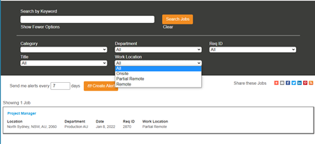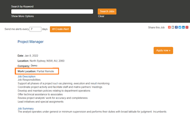 Job titles are a key part of attracting the right talent. Normally we would recommend keeping job titles limited to the title only, free of additional details such as location, shift, and abbreviations to make sure they are easily searchable, but adding something simple like “Remote” or “Work from Home” can help candidates quickly identify jobs that may be of interest when using keyword search.