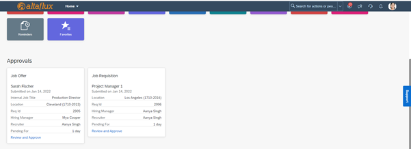 The approvals section is like the “to do” section on the current version of the home page. Items included in the approvals section include things such as Job Requisition and Offer Approvals, Review Performance, and Complete Learning Assignments just to name a few. You can find a list of items that will appear in the approvals section of the home page in the help guide.