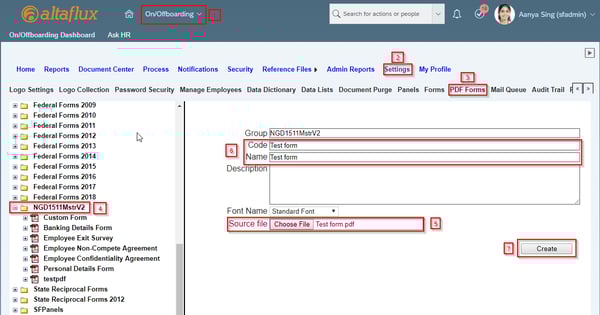 Go to Onboarding -> Settings -> PDF Form -> <Your company ID> -> Upload the form -> Create