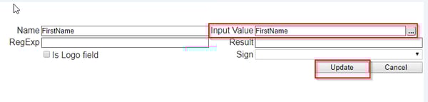 The key value would come up in the Input Value. You’ll need to click on Update. Repeat that for all the fields.