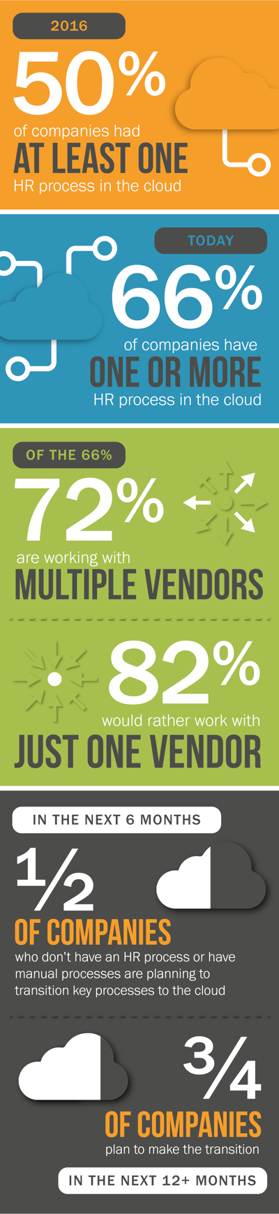 Our findings also show that most organizations are planning to move at least one HR process to the cloud this year. What proccesses take priority in your transformation? See how you compare to your peers in this infographic that shows the current state of HR’s digital transformation.