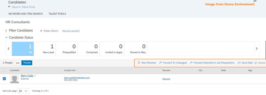 From your talent pool, you can view the candidate’s resume (if provided), forward to a colleague or to a job requisition, send ad hoc emails or use the action menu to take further action on the candidate. You can also add talent pool members to email campaigns (which we will cover in detail in an upcoming blog).