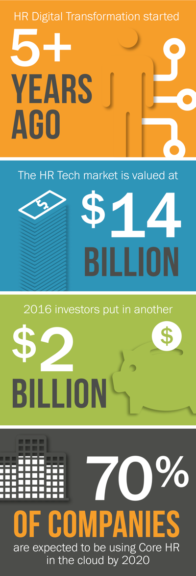 Whether you call it “the journey to the cloud,” or “HR digital transformation,” the question is - have you started yet? We’re often asked by our customers how they compare to others, so we conducted a survey in Q1 of 2017 to gauge where organizations were in their digital transformation, specifically related to HR.