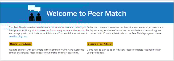 Peer Match Program SAP SuccessFactors recently rolled-out this tool in the Customer Community to match customers up with others who have valuable experiences and expertise to share. If you are a new system administrator, use the Peer Search tool (Implement) to search for an advisor with experience that will be useful for you (module specific and/or in a similar industry/field). For seasoned system administrators, sign up to be a Peer Advisor based on your area of expertise and interests.