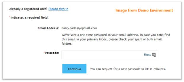 Once the candidate completes the required fields and selects Create Account, they will receive an email (managed in Recruiting email triggers) with a one-time password and will be prompted to enter that password. Once the password is verified, the account will be successfully created. The password is good only for a short period and if not entered during that time frame, the applicant can request a new passcode.
