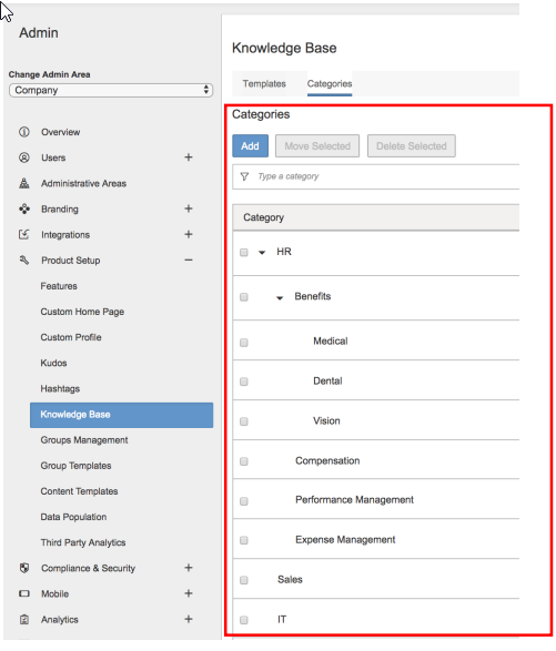 Filter and search for KB articles based on hierarchical categories. Company admins can create up to three levels of hierarchical categorization for KB articles, up to 150 categories at each level.