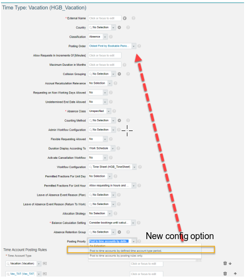 When one leave type deducts two or more different time accounts and time account balances from previous year exist the configuration option to decide which time account shall be deducted first when in addition a remaining balance in same time account type but from a previous period exist. This is especially used in the Netherlands.