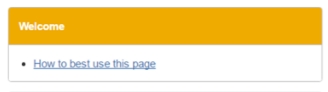 Start with the Welcome tile and click on how to best use this page to get accustomed to where to navigate and find information.