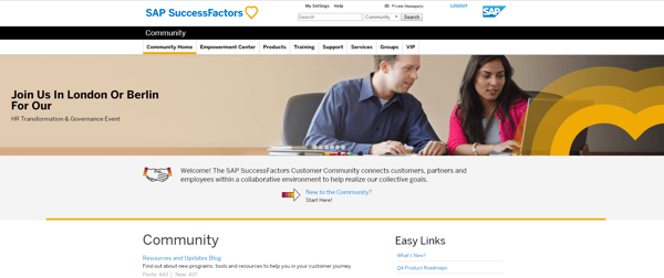 The Customer Community is a private platform – exclusive to SAP customers, partners, SAP SuccessFactors product experts and support analysts. The community enables customers to be self-sufficient by leveraging tools, resources and through interaction with other members. Here you can gain insight into product release information, roadmaps, previews, and share ideas to influence the SAP SuccessFactors product roadmap.