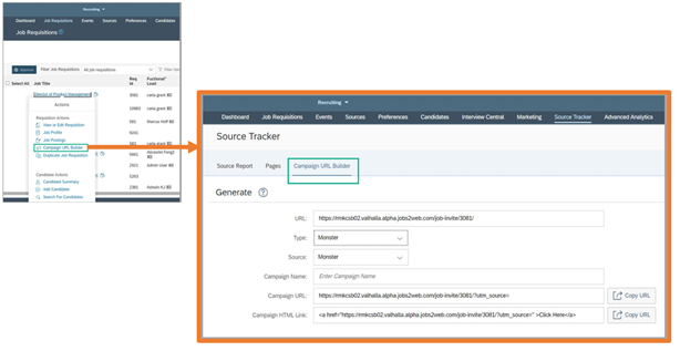 For users who frequently create campaign tracking links for job requisitions you will notice a difference in how you navigate to that page. “Market Job” has been replaced with “Campaign URL Builder” making it more clear about what the link does. It also reduces the number of clicks to get to the campaign URL builder page from 3 to 2, further streamlining that process.