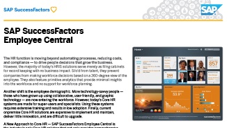 With the SAP SuccessFactors Employee Central solution, you can manage your people locally while supporting the business globally with localized compliance. You are also able to integrate core data with talent and business processes for better insight, strategic decision making, and, ultimately, better business performance.