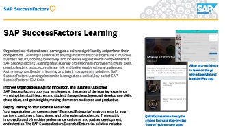 SAP SuccessFactors Learning helps learning professionals improve employees’ skills, develop leaders, reduce compliance risk, and better enable external audiences.