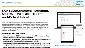 SAP SuccessFactors Recruiting and Recruiting Marketing helps you source, engage, and hire the world’s best talent. Unlike other approaches, it provides a comprehensive yet, simple solution that provides guidance to everyone, at every step.